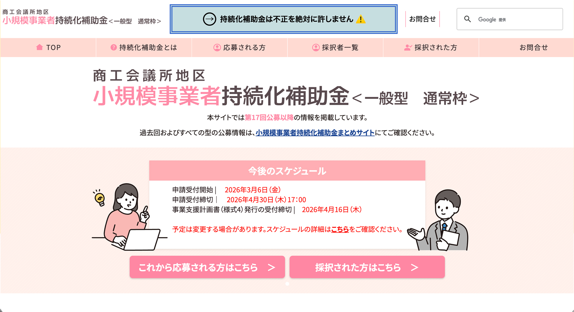 小規模事業者持続化補助金<一般型・通常枠>ー商工会議所
