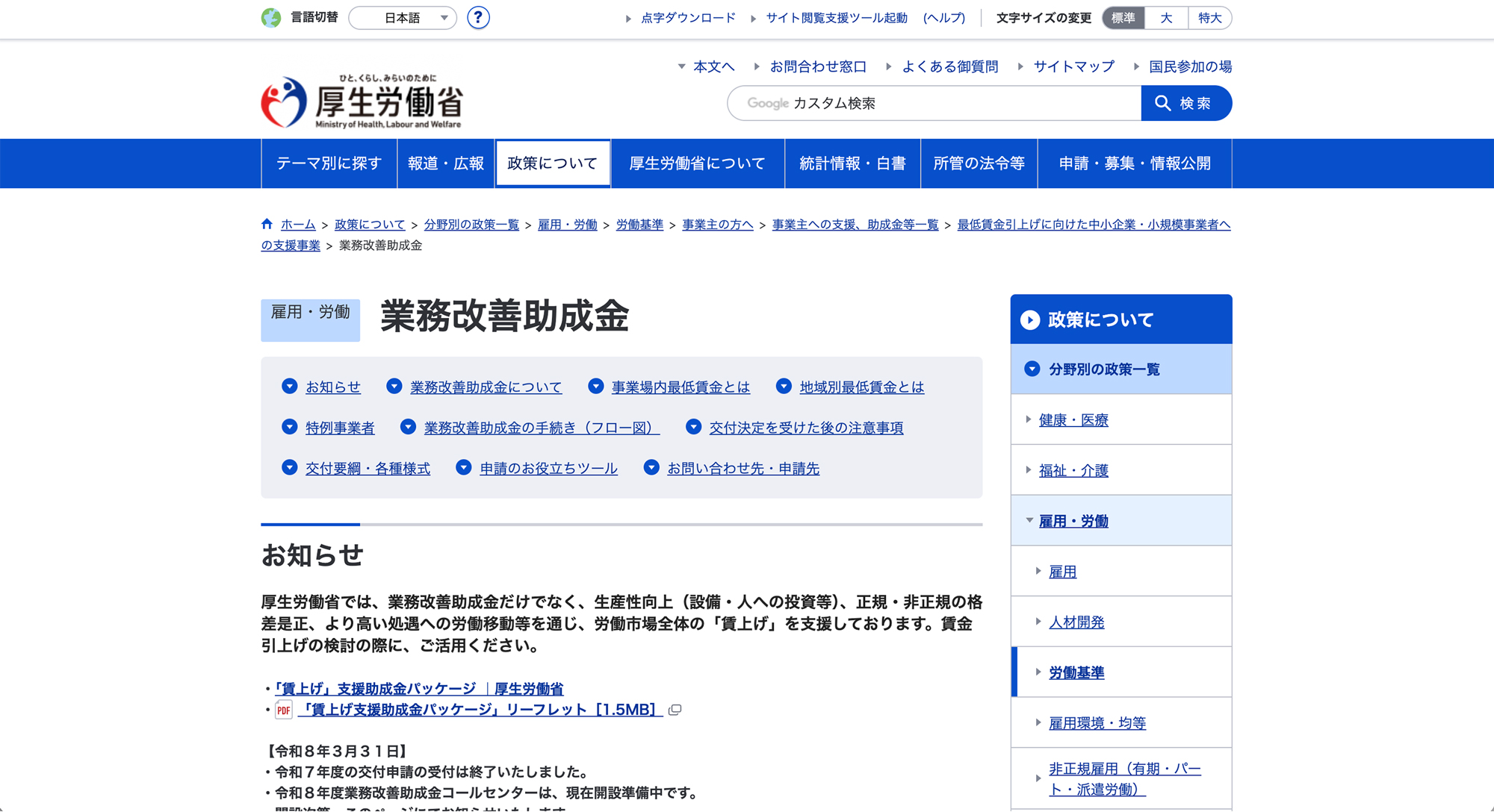業務改善助成金ー厚生労働省 ※今年度の詳細未定